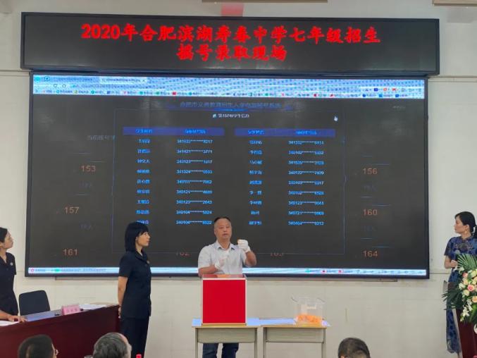 7月21日,位于庐阳区的合肥寿春中学举行了2020年招生摇号录取现场会。与此同时,合肥滨湖寿春中学、合肥168中学(陶冲湖校区)也各自举行招生摇号录取现场会。摇号结果随即向社会进行公布,家长可登录网上报名系统查询录取结果。